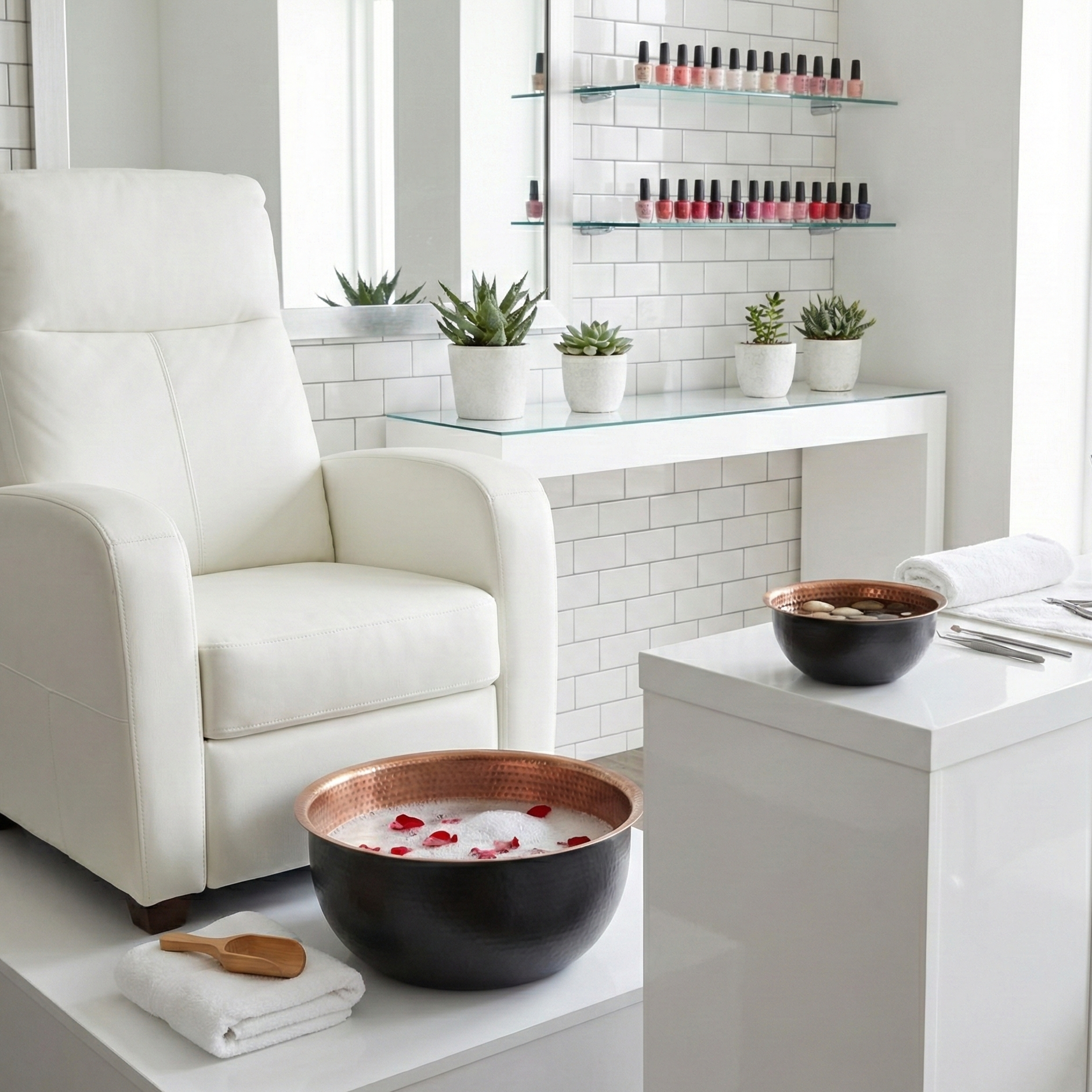 Lightweight and portable, it's ideal for studios, spas, or mobile services. Pair with the Hand-Hammered Copper with Black Pedicure Bowl for a cohesive and elevated aesthetic.